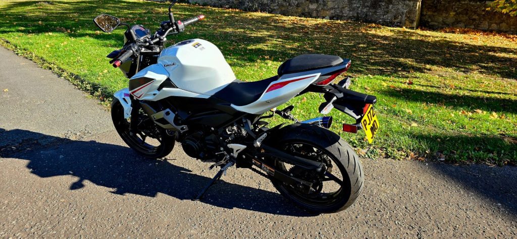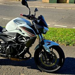 About the model:- The Kawasaki ER400, more commonly known as the Z400, is a popular entry-level motorcycle for both novice and experienced riders. It’s designed to be an A2 license-friendly machine, meaning it’s suitable for riders with a limited license in the UK. The Z400 is known for its fun and engaging handling, especially in urban environments, making it a great commuting and around-town bike. Here’s a more detailed look at the ER400/Z400: Key Features and Benefits: A2 License Friendly: The Z400 is designed to be a safe and enjoyable option for riders with A2 licenses, allowing them to gradually progress to more powerful bikes. User-Friendly: Its easy-to-manage nature and forgiving power make it a great choice for beginners. Fun and Engaging: The Z400 offers a sporty riding experience, making it a pleasure to ride in urban settings. Reliable and Practical: The Z400 is known for its reliability and practicality, making it a good option for daily commuting. Affordable: The Z400 is generally considered to be a relatively affordable motorcycle, especially for those starting their motorcycle journey. Design and Specifications: Styling: The Z400 features a design inspired by the Ninja H2 and Ninja ZX-10R, including chin spoilers and a dashboard inspired by the Ninja 650. Frame: It has a steel trellis frame with the engine as a stressed member, contributing to its lighter weight. Suspension: The suspension is designed to be stiffer than the Ninja 300, offering better handling and cornering stability. Features: The Z400 comes with ABS, a slipper clutch, and LED headlights and taillights. In summary, the Kawasaki ER400/Z400 is a well-rounded, A2-friendly motorcycle that’s perfect for new riders and those looking for a fun and practical bike for everyday riding, especially in urban areas.